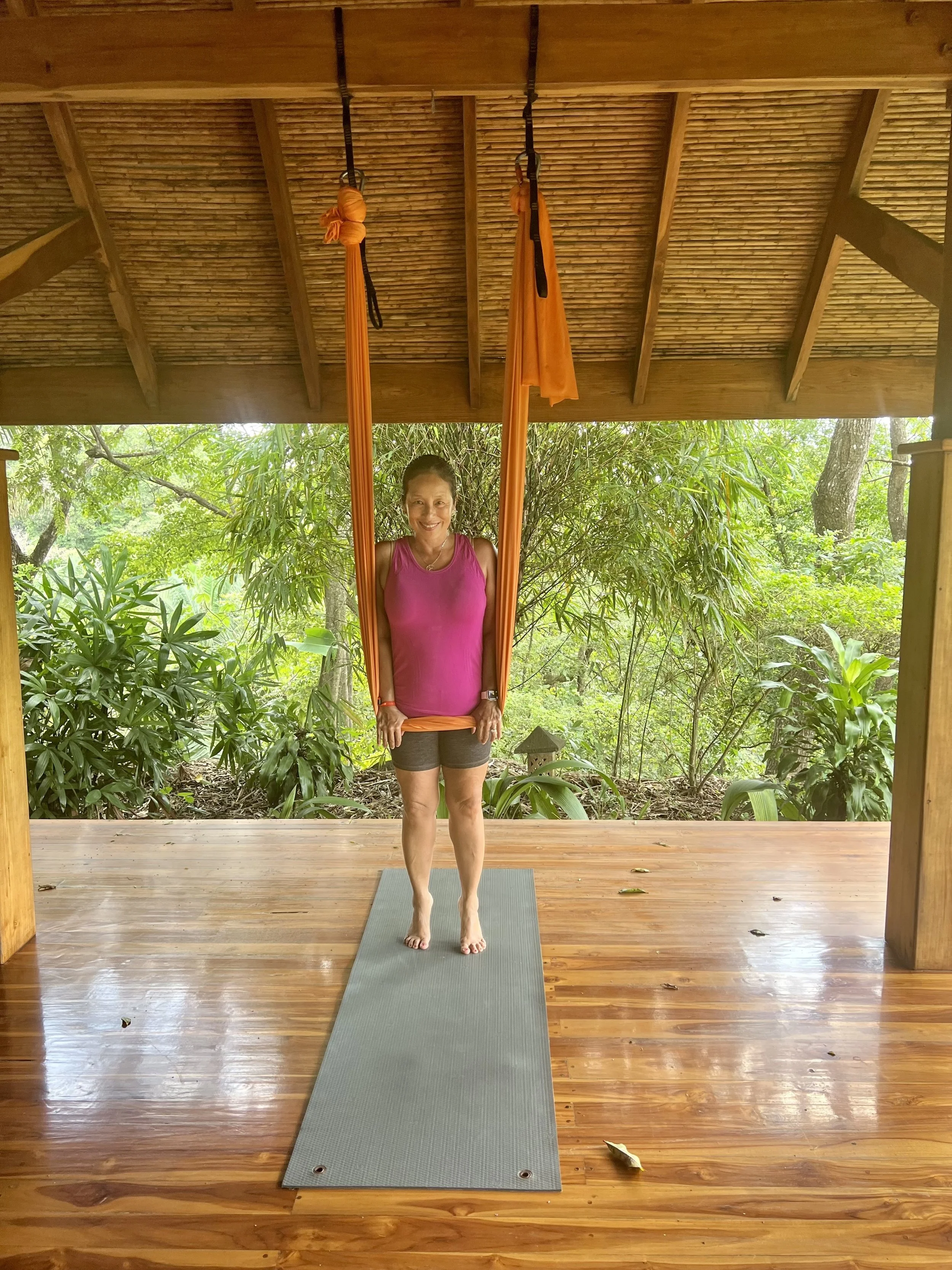 Preparing for an aerial fitness class in Nicoya, Costa Rica